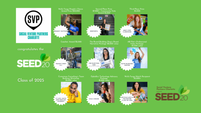 It might have been April 1, but there were no fools in Central Piedmont’s Parr Theater for SEED20 OnStage last night! Social Venture Partners Charlotte welcomed over 500 people including in-person audience members and livestream viewers so the SEED20 Class of 2025 could share their stories and grow their impact! As one audience member observed to an SVP…